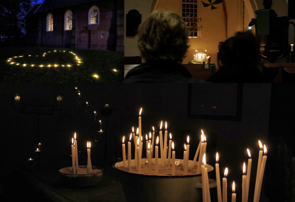 Op zondagmiddag 2 november wordt de Bartholomeuskerk in Noordlaren (Lageweg 8) van binnen en buiten sfeervol in kaarslicht gezet. Aansluitend bij Allerzielen, een oude kerkelijke traditie, kan ieder die dat wil daar tussen 17.00–18.30 uur een kaarsje aansteken ter herinnering aan overleden dierbaren. Jong en oud, gelovig of niet, is van harte welkom in en om de kerk, een plek waar al eeuwen lang stilgestaan wordt bij leven en dood.